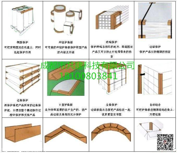 成都纸护角制造商生产的纸保护器(paperangle bead)也称作边缘板。它是国际包装产品之一,用于代替木质包装和其他笨重的包装方式,具备价钱低,重量轻,坚固,环保要求的特征,又称纸包角或护角纸板,边缘板,角纸和纸角钢,由梭芯纸和牛卡纸通过一组角保护机制成。两边光滑平坦,无显著毛刺,且互相垂直。它可以替代100%回收的木材,是完美的新型绿色包装材料。